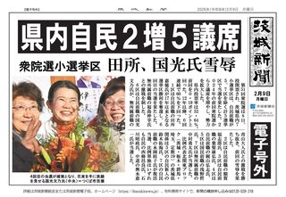 第51回衆院選は8日、投開票され、茨城県内7小選挙区は、自民前職が5、7区を除く計5選挙区で当選を果たした。2024年の前回衆院選から2議席を増やし、勢力を拡大した。